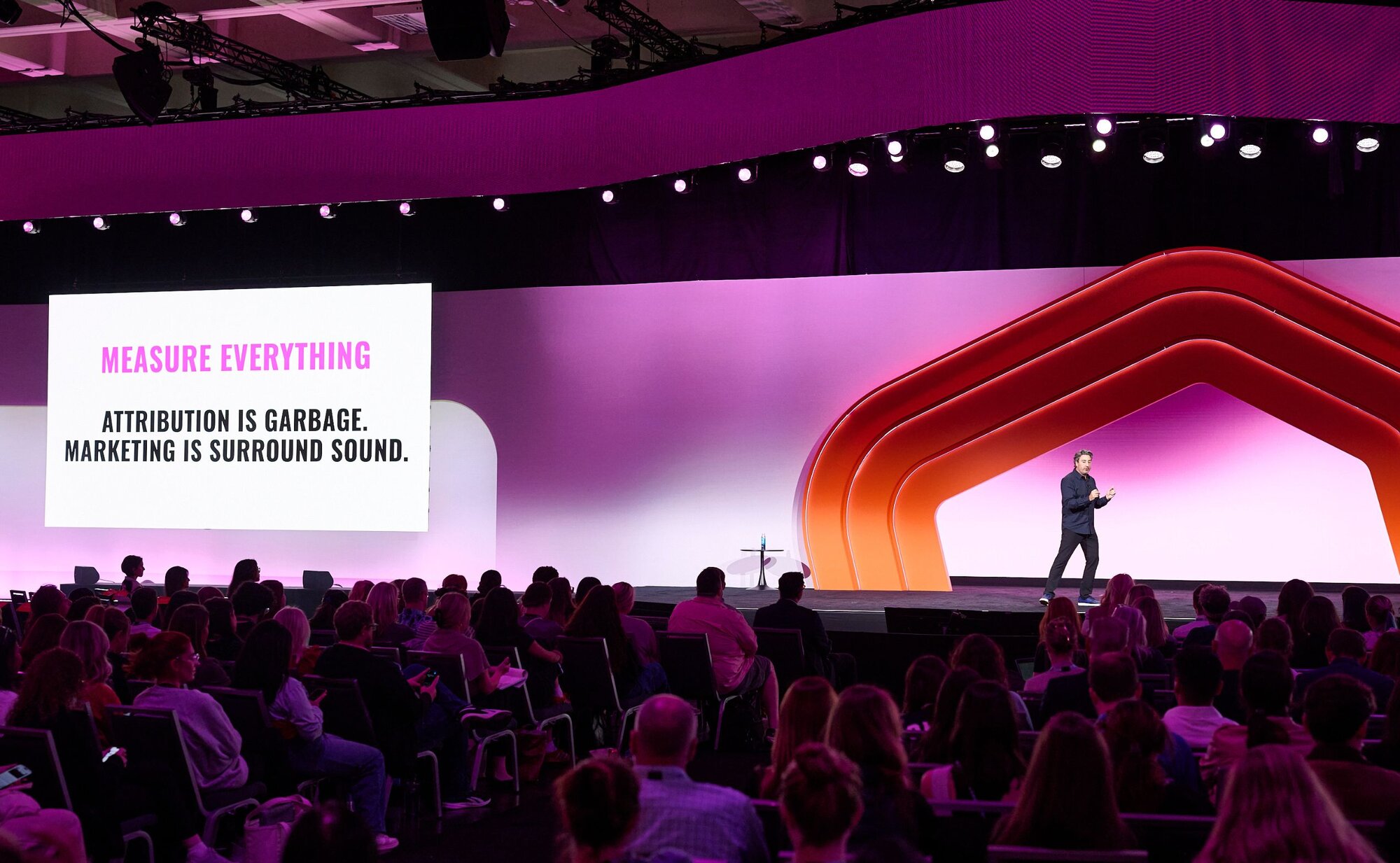 Not because measurement doesn’t matter, but because buying decisions rarely hinge on a single email, ad, or post. Most influence happens gradually, across multiple moments and channels. “Marketing now,” he said, “is surround sound.”