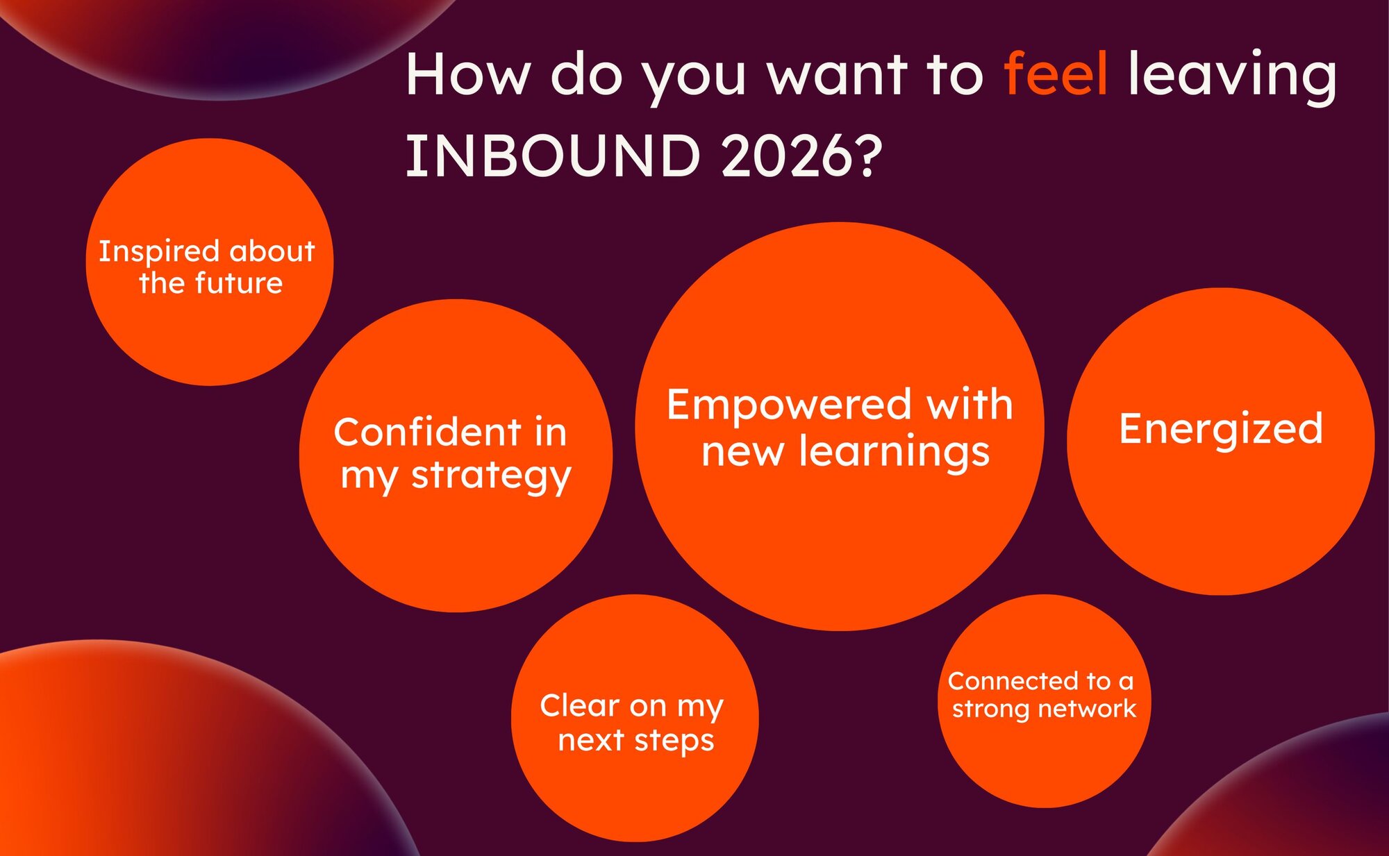 When we asked how attendees want to feel walking out the door, nearly three out of four respondents gave the same answer: empowered with new learnings. That’s the standard we’re building toward for INBOUND 2026: an experience designed to send you back to your team with a real action plan and the confidence to implement it on your first day back at work.